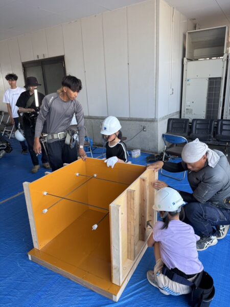 『型枠大工になりたい!』って言って一昨年来てくれたお子さんが去年も来てくれて、特別にハンマーをあげました。希望する子に大工道具(小針小さいバール)をあげたりと。子供の時の楽しかった思い出が将来の自分のやりたい仕事に繋がってくれたりすると嬉しいですね。